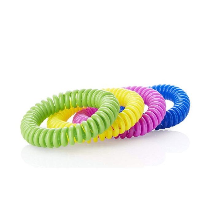 Tento štýlový náramok je napustený éterickými olejmi v rôznych pomeroch: citronela, citronová tráva a geraniol. Postupne uvoľňuje vôňu, ktorá účinne odpudzuje hmyz. Osobu, ktorá nosí náramok na ruke, obklopuje jemná aróma, vďaka ktorej chráni nielen miesto, kde sa náramok nosí, ale aj celé telo. Ľudský nos si zvykne na vôňu éterických olejov a pre hmyz je nepríjemný. Navyše tento náramok môžete využiť aj ako gumičku do vlasov.