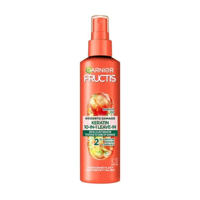 Obnovte a posilnite svoje vlasy s bezoplachovým sprejom Garnier Fructis Goodbye Damage 10 v 1. Tento všestranný vlasový prípravok je ideálny na poškodené, lámavé či oslabené vlasy — ponúka až 10 okamžitých účinkov v jednom kroku.