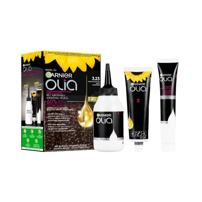Farba na vlasy Olia od Garnier ako jediná na trhu využíva ODS (Oil-Delivery System) technológiu. Farba na vlasy je na báze ošetrujúcich olejov, je efektívnejšia a zároveň šetrnejšia k vlasom než technológia na báze amoniaku. Poskytuje neobyčajne sýty výsledok a 100 % vám prekryje šediny. Kombinácia rastlinných olejov dodá vašim vlasom až 3x viac lesku a viditeľne zlepšuje ich kondíciu. Vlasy ostávajú po použití hebké a v krásnej žiarivej farbe.