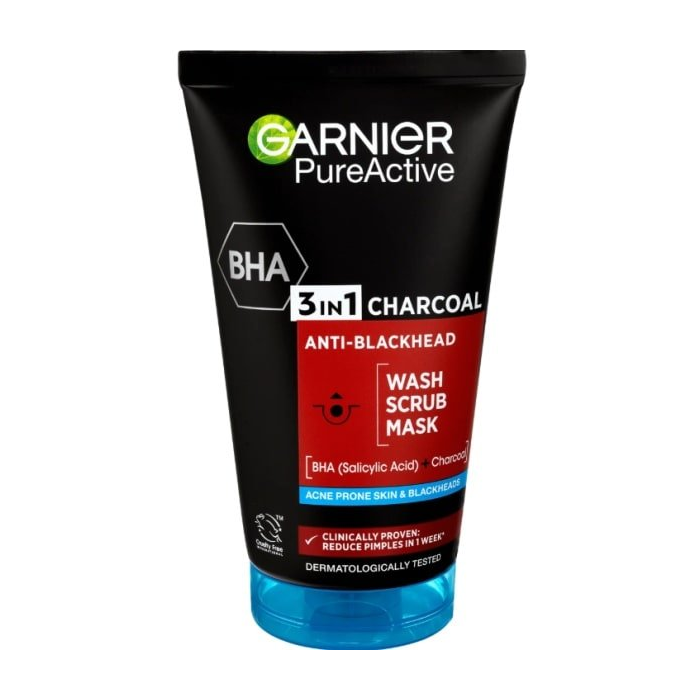 Multifunkčný produkt Garnier PureActive Charcoal 3v1 ponúka čistenie, exfoliáciu a hĺbkovú detoxikáciu pleti v jednom kroku. Vhodný pre mastnú a aknóznu pleť so sklonom k čiernym bodkám.