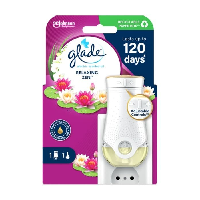 Glade Electric Scented Oil je elektrický osviežovač vzduchu, ktorý prevonia váš domov či kanceláriu relaxujúcu exotickou vôňou japonskej záhrady a tým pre vás vytvorí príjemnú atmosféru. Pri nízkom nastavení intenzity a dennom nastavení 12 hodín denne na odparovači každá náplň poskytne až 100 dní vône.