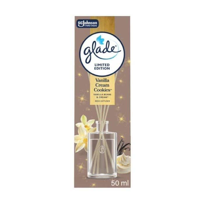 Difuzér s vonnými tyčinkami Glade Vanilla Cream Cookies prináša do vášho domova krásnu vôňu vanilkového pečiva, ktorá navodzuje pocit pohody a útulnej atmosféry. Tento elegantný bytový difuzér je ideálny na každodenné prevoňanie obývačky, spálne, kúpeľne aj kancelárie.