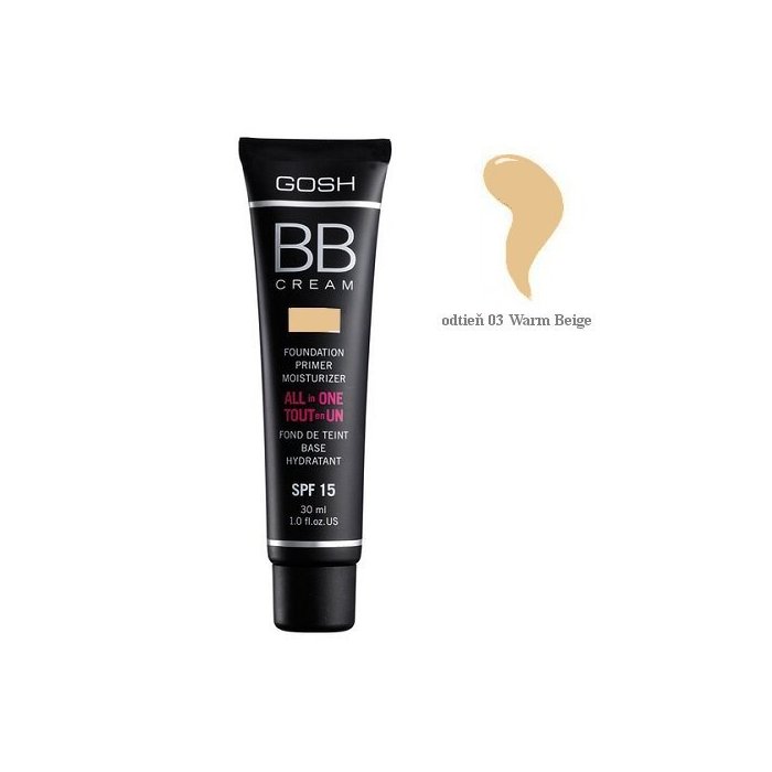 Gosh BB Cream je dokonalý výrobok, ktorý ocení každá žena, ktorá ocení každú minútku k dobru každé ráno strávené pred zrkadlom. Gosh BB Cream totižto v sebe spája 3 výrobky - denný hydratačný krém, podkladovú bázu a make-up. Vďaka nemu bude Vaša pleť po nanesení behom chvíľky krásne rozžiarená a hydratovaná, s vyplnenými vráskami a nedostatky pleti budú dokonalo zakryté prirodzene krycím make-upom. Gosh BB Cream má obrovskú výhodu aj v tom, že obsahuje technológiu tzv. prispôsobivej farby. Znamená to, že jeden odtieň pokryje viaceré tóny pleti, pretože dokáže splynúť s vlastným tónom pleti a dodať jej ľahké krytie, ktoré nepôsobí dojmom masky. Preto sa odtieň vyberá veľmi ľahko, už si nemusíte lámať hlavu a rozhodovať sa či svetlejší, či tmavší - jednoducho si vyberte odtieň, ktorý je najbližsie k Vašej prirozenej farbe pleti a Gosh BB Cream sa rýchlo a prirozdene prispôsobí Vášmu tónu. Zloženie výrobku je obohatené o najlepšie zložky, napr. Phytosan, čo je rastlinný komplex, ktorý vyhladzuje linky a vrásky a postará sa o spevnenie pleti. Má skrášľujúce a ochranné účinky na pleť. Možno naniesť štetcom alebo končekmi prstov.