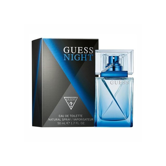 Guess predstavuje pánsku sviežu drevitú vôňu Night. Učená je pre mladých mužov vo veku 18 až 24 rokov, ktorí obľubujú elektronickú a tanečnú hudbu. Drevitá - fougere vôňa Guess Night sa otvára pikantnými tónmi korenia, grapefruitu, živice elemi a papriky. Vetiver, céder a pelargónia sú v samom srdci parfému, kým základ tvorí pačuli, labdanum a čierna vanilka. Elegantný dizajn modrého flakónu zo skla vyžaruje odraz svetla ako v nočnom klube.
