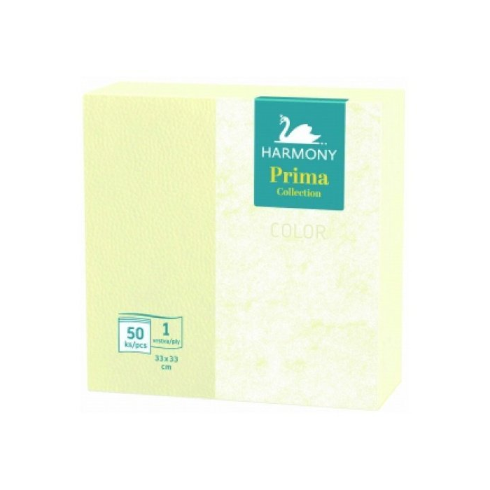 HARMONY Prima Papierové servítky svetložlté, 1-vrstvové, 50ks - 1 vrstva - 33x33cm - 50ks