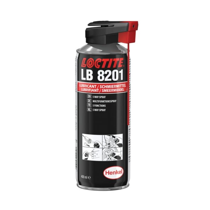 LOCTITE LB 8201 umožňuje ľahké mazanie malých mechanizmov. Vytesňuje vlhkosť z navlhlých elektrických zariadení a zanecháva ochranný protikorózny film. Typické použitie tohto produktu je v rozsahu pracovných teplôt od -20°C do +120°C.