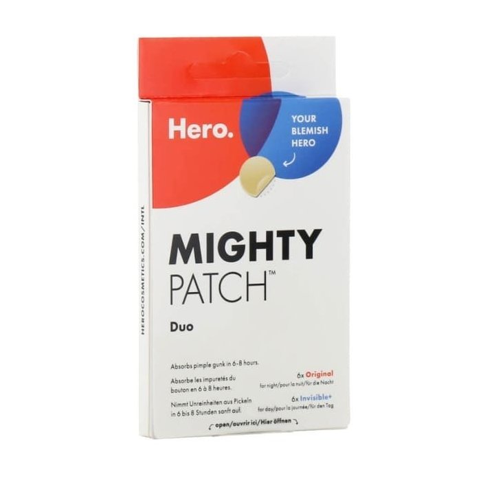 Hero. hydrokoloidné náplasti na akné Mighty Patch Duo sú hydrokoloidné náplasti, ktoré vyťahujú nečistoty, maskujú škvrny na pleti a pomáhajú pri redukcii vyrážok. Náplasti sú neviditeľné, takže sú vhodné na každodenné nosenie. Náplasti na akné Hero. budú vaším spoločníkom v akejkoľvek situácii. Zbavte sa vyrážok ľahko, rýchlo a nenápadne so značkou Hero.
