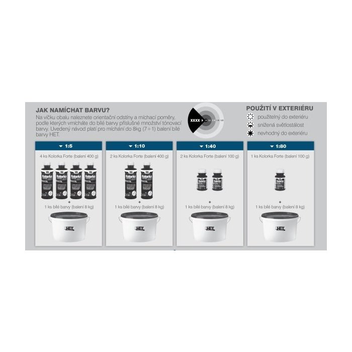 • výslednú sýtosť a odtieň veľmi ovplyvňuje náterová hmota, do ktorej sa prípravok primiešava, preto je pred aplikáciou vhodné vykonanie skúšobného náteru a jeho vyhodnotenia v suchom stave