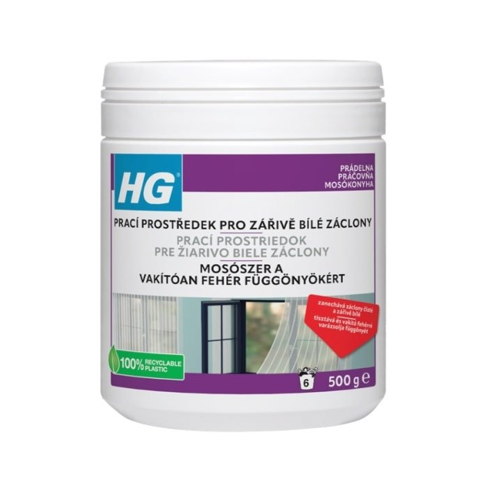 Pôsobením prachu, kuchynských a nikotínových výparov sú záclony nevzhladné a šedivé. HG čistiaci prípravok pre žiarivo biele záclony bez námahy odstránia tieto nečistoty, vaše záclony nechajú žiarivo čisté a dajú im nádherne sviežu vôňu. Existuje HG prací prostriedok na biele záclony a na farbené záclony.