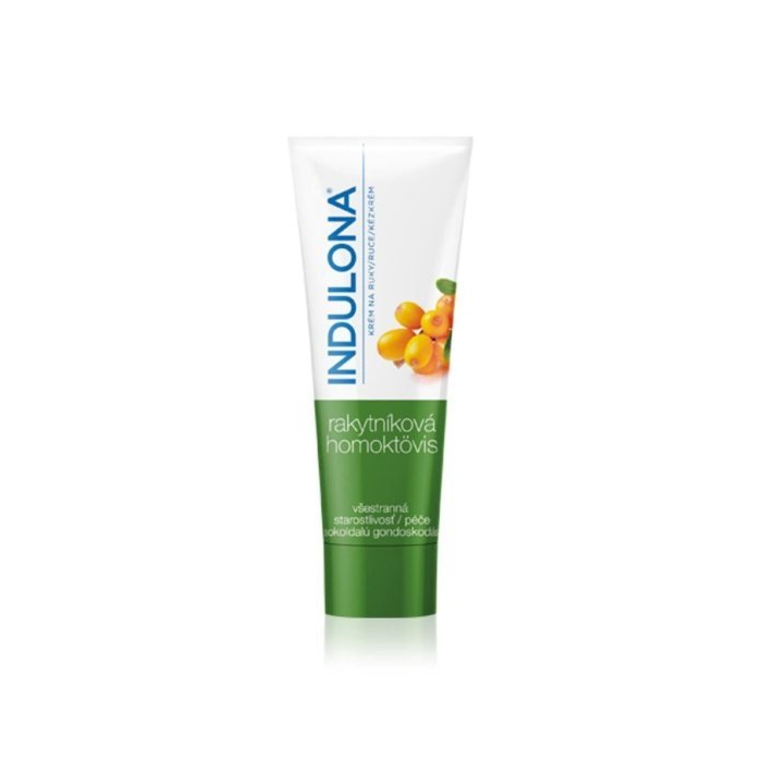 Krém na ruky Indulona s vysokým obsahom oleja rakytníka je určený pre unavenú a podráždenú pokožku rúk i celého tela. Olej rakytníka v sebe obsahuje karotén, vitamíny a minerálne soli, ktoré priaznivo pôsobia na rast tkaniva v miestach poškodenej pokožky a krém je tak vysoko regeneračný a hojivý. Tiež má pozitívne účinky na starobu kože, zabraňuje tvorbe vrások a omladzuje.