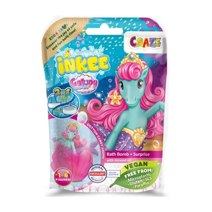 Šumivá bomba do kúpeľa s mandľovým olejom a prekvapením a vôňou cukrovej vaty. Balené v ekologickom vrecku. Nazbierajte až 6 figúrok! Vegan.