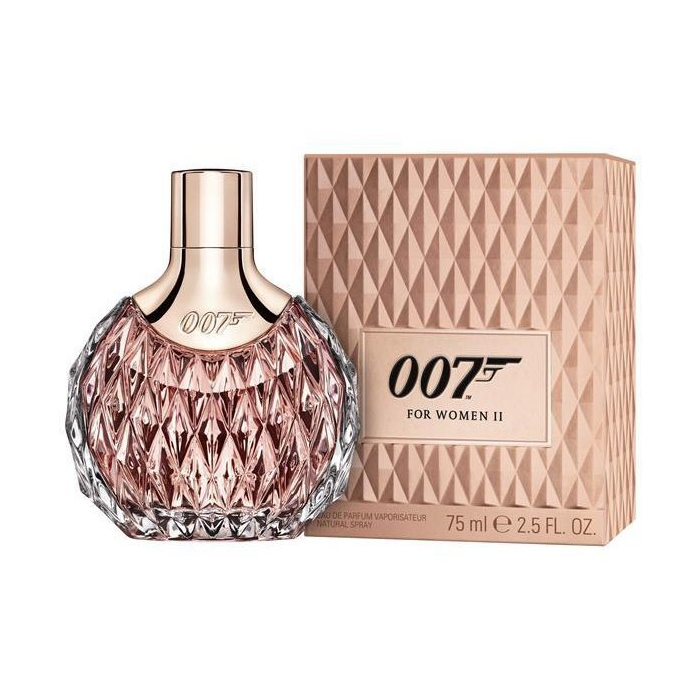 James Bond 007 for Women II, parfémovaná voda 75ml James Bond 007 for Women II je sviežou dennou spoločníčkou dopĺňajúcou charakter klasickej vône na večer 007 for Women. Nová orientálna kvetinová vôňa evokuje ľahšiu, no hlbok ženskosť s dotykom kvetín. Exkluzívna zmes zložiek stelesňuje esenciu ženy Bonda, zachytávajúc unikátnu a očarujúcu zmes krásy, inteligencie a magnetickej charizmy. Vôňa bola uvedená na trh vo februári 2016. Sofistikovanú vôňu otvára príval pikantného ružového korenia vyvážený zamatovou stránkou ružovej frézie a žiarivosťou kráľovských malín. Tóny pripomínajúce luxusné ružové šampanské sú odrazom skutočnej duše oslnivo krásnej ženy agenta. Ovocný charakter černíc sa v srdci spája s kvetinovým buketom slnečnej gardénie a ružového oleandra v objatí nádhernej čiernej ruže. Bohatý základ, kľúč orientálneho podpisu vône, kombinuje tóny vanilky a hodvábneho pižma, podčiarknuté elegantnými dotykmi cédru a kože. Flakón vône 007 for Women II s originálnym diamantovým vzorom na povrchu a luxusne priezračným sklom, prezrádza ružový elexír. Nádherne zrezané plochy vytvárajú efekt kaleidoskopu a nádherne odrážajú dopadajúce svetlo. Zloženie vône James Bond 007 for Women II: Hlava: ružové korenie, ružová frézia, kráľovské maliny Srdce: černice, gardénia, ružový oleander Základ: vanilka, céder, koža, pižmo
