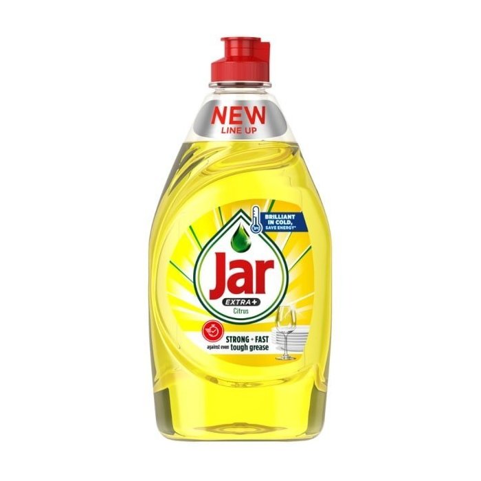 Umývajte riady rýchlo a efektívne s tekutým prostriedkom na umývanie riadu Jar Extra+ Citrus. Jar dosahuje brilantné výsledky už pri nízkych teplotách. Vynikajúca odmasťovacia schopnosť funguje okamžite bez potreby namáčania, vďaka čomu strávite v kuchyni menej času. Jar jednoducho opláchnete a užívate si už len čisté a žiarivé výsledky. Navyše vás presvedčí neodolateľná vôňa citrusu, ktorá dodá vašim riadom sviežosť. Jar Extra+ Citrus Strong + Fast pre brilantnú čistotu a sviežu vôňu vašich riadov.