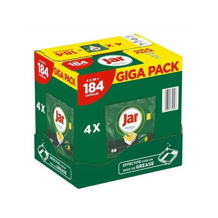 Kapsuly do umývačky riadu Jar Original All in One čistia hneď na prvýkrát, sú účinné aj pri zaschnutej mastnote a zanechajú váš riad žiarivo čistý. Jar kombinuje tekutinu a prášok do jednej silnej kapsuly. Jej vysokorozpustné vrecúško sa rýchlo rozpustí a čistí hneď od začiatku programu.