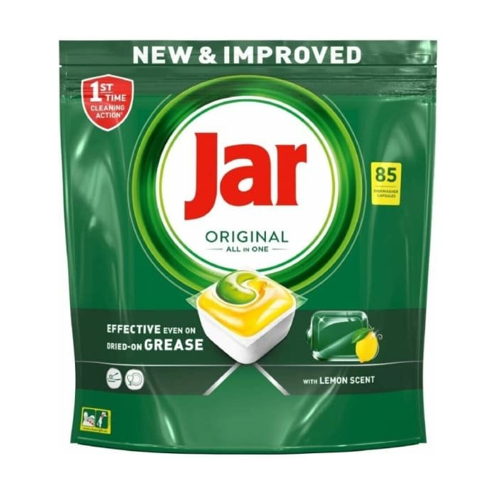Kapsuly do umývačky riadu Jar Original All in One čistia hneď na prvýkrát, sú účinné aj pri zaschnutej mastnote a zanechajú váš riad žiarivo čistý. Jar kombinuje tekutinu a prášok do jednej silnej kapsuly. Jej vysokorozpustné vrecúško sa rýchlo rozpustí a čistí hneď od začiatku programu.