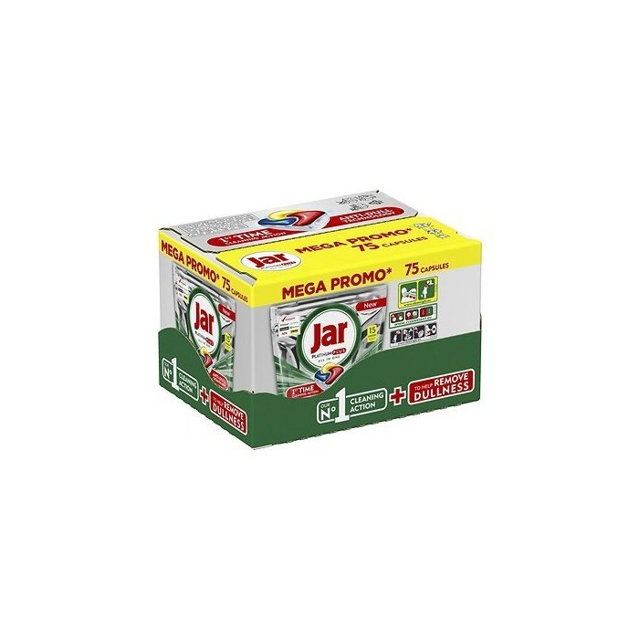 Najlepšie odstraňovanie odolných zvyškov jedla od značky Jar, ktoré zanecháva riad žiarivo čistý a ako nový. Jar tablety do umývačky nielenže rozložia odolné zvyšky jedla, ale pomôžu tiež odstrániť zašedlosť, ktorá vzniká v priebehu času a obnovia originálny lesk vášho riadu. Jar kapsuly Platinum Plus s tromi komorami naplnenými tekutinou sa rýchlo rozpúšťajú aj pri nižších teplotách. Môžu sa používať v krátkych cykloch a majú integrovanú funkciu leštidla a soli, ochranu striebra a skla. Vlastnosti: Najlepší prostriedok na umytie odolných zvyškov jedla, ktorý zanecháva váš riad žiarivo čistý a ako nový Odstráni aj odolné zvyšky jedla a nepoddajnú mastnotu Pomôže dokonca odstrániť matný vzhľad vytvorený v priebehu času a obnoví originálny lesk Kapsula s 3 komorami naplnenými tekutinou sa rýchlo rozpúšťa aj pri nižších teplotách Vhodné aj pre krátke cykly Integrovaná funkcia leštidla a soli, ochrana striebra a skla Zloženie: 5–15% Neiónové Povrchovo Aktívne Látky, Bieliace Činidlá na Báze Kyslíka,