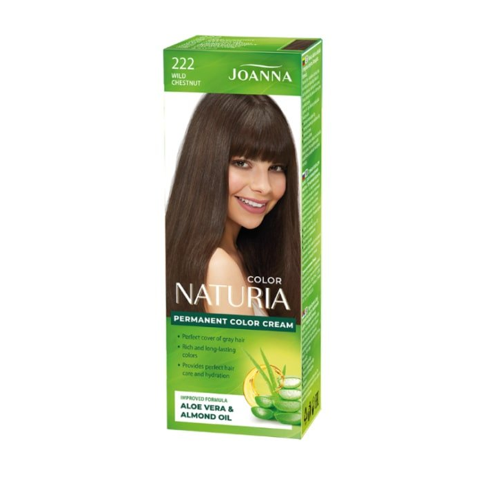 Joanna Naturia Color je trvácna farba, ktorá je aplikovaná pomocou štetca a vďaka unikátnej receptúre šetrne obalí každý jeden pramienok vlasov a dodá mu hebkosť a žiarivý lesk. Dokonale kryje šediny.
