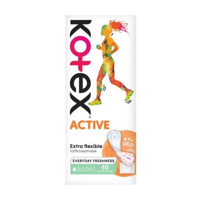 Kotex Active Deo Extrasupertenké intímne vložky, ktoré poskytujú mladým i dospelým ženám maximálny komfort a sviežosť každý deň. Ideálne na nosenie počas aktívneho dňa alebo v prípade ľahšieho krvácania.