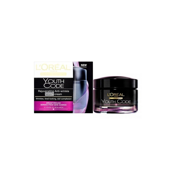 L´ORÉAL Dermo-Expertise Kód Mladosti - omladzujúci nočný krém proti vráskam Prichádza nová éra založená na vede o génoch - 10 rokov výskumu S vekom sa pleť pomalšie vyrovnáva s pôsobením vonkajších vplyvov a horšie sa regeneruje. Dôsledky: vrásky, unavená pleť, povädnuté rysy tváre, strata jasu pleti. Na základe skúmania rozdielov expresie génov (vyjadrenie genetickej informácie) mladej a staršej pleti dešifruje Výskum L´Oréal v spolupráci s lekrskymi tímami kód mladosti pleti. Patentovaná Pro-Gen technológia bola vyvinutá pre zlepšenie schopnosti pleti regenerovať sa a pre obnovu jej prirodzeného kódu mladisti. VÝSLEDOK: Vďaka starostlivosti KÓD MLADOSTI pleť znovu získava vlastnosti mladej pleti: je hladká, svieža a rozjasnená. Po 1 hodine: pleť sa začína vyhladzovať, je viac hydratovaná a svieža. Po 1 týždni: rysy tváre vyterajú sviežo, pleť je rozjasnená. Po 1 mesiaci: vrásky sú viditeľne redukované.