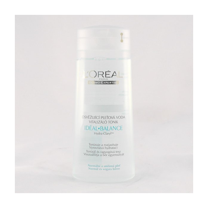 L´ORÉAL DEX - pleťová voda pre normálnu a zmiešanú pleť Osviežujúca pleťová voda IDÉAL BALANCE Hydra Claryl je špeciálne prispôsobená potrebám normálnej a zmiešanej pleti. ÚČINKY: Tonizuje, čistí a odstraňuje posledné nečistoty. rozjasňuje pleť. Pleť je viditeľne čistá a svieža. Je jemná, hladká a zjednotená.