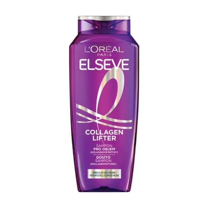Použitie: Naneste na mokré vlasy, jemne vmasírujte do pokožky hlavy a dôkladne opláchnite. V prípade kontaktu s očami ich okamžite a starostlivo vypláchnite vodou. Pre dosiahnutie najlepších výsledkov pokračujte s balzamom Elseve Collagen Lifter. Pre maximálny objem používajte spolu s balzamom a sprejom Elseve Collagen Lifter ako kompletnú objemovú rutinu.