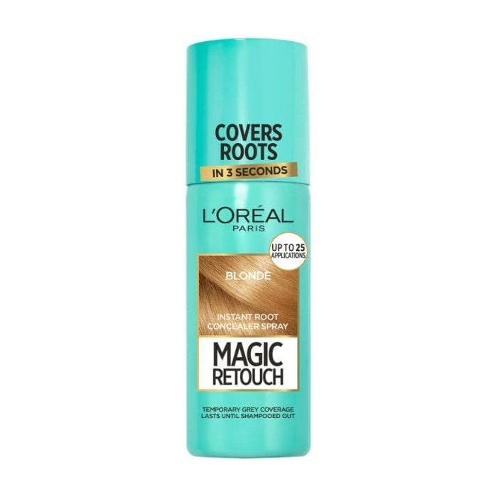 Sprej na vlasy L'Oréal Paris Magic Retouch v blond odtieni je ideálnym riešením na okamžité zakrytie odrastov. Tento dočasný farebný sprej je dostupný v niekoľkých prírodných odtieňoch a v jednom kroku efektívne prekryje šedivé či farebné odrasty. Tajomstvom spreja je špeciálny farebný pigment, ktorý dokonale priľne k vlasu a bezpečne vydrží až do ďalšieho umytia šampónom. Dosiahnete okamžité prekrytie šedín už za pár sekúnd. Po aplikácii sprej zjemňuje farebný prechod medzi vlasmi a perfektne sa prispôsobuje ich štruktúre. Sprej rýchlo zasychá a dodáva vlasom jemnú textúru, čím zabezpečuje prirodzený vzhľad. Užite si bezstarostné okamihy s L'Oréal Paris Magic Retouch a majte svoje vlasy vždy dokonale upravené!