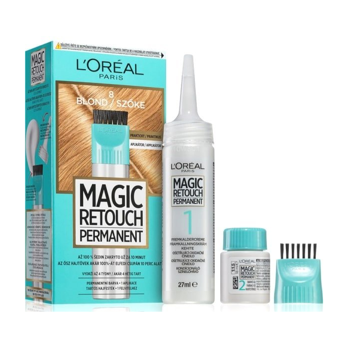 L'Oréal Paris Magic Retouch Permanent je jednoduché a rýchle riešenie pre odrasty. Splynie s farbou vašich vlasov a kryje až 100% šedín už za 10 minút. Farba je vhodná pre všetky typy vlasov. Vydrží až 4 týždne.
