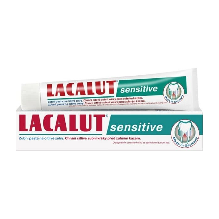 Zubná pasta Lacalut sensitive je určená pre citlivé zuby a ďasná na ochranu proti parodontitíde a pri krvácaní z ďasien. Látky v paste okamžite sťahujú a spevňujú ďasná a zstavujú ich krvácanie. Vytvrdzujú zubnú sklovinu a zabraňujú tak vzniku zubného kazu.