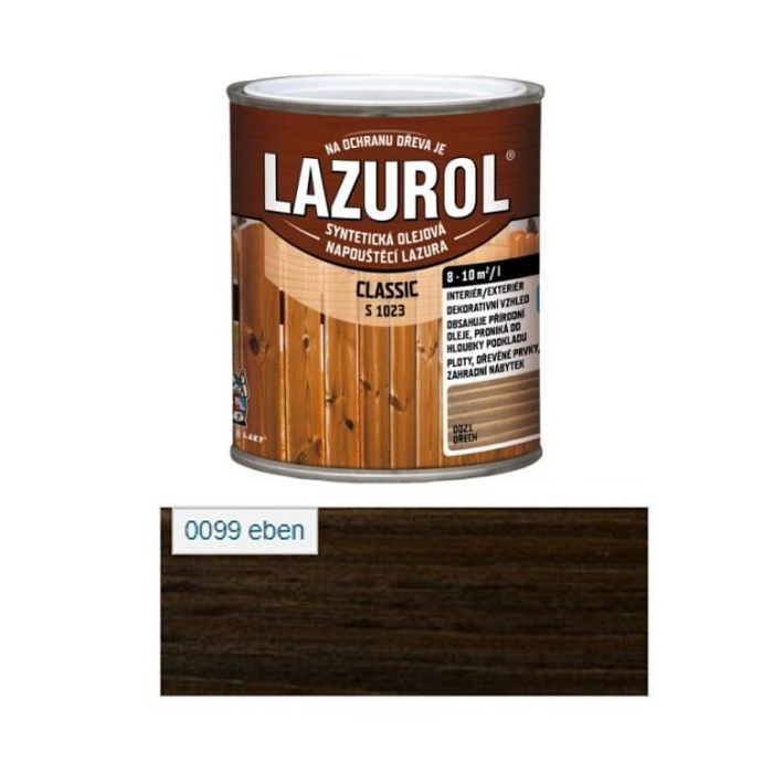 LAZUROL CLASSIC S 1023 je napúšťacia syntetická lazúra so zmesou voskov. Lazurovací lak sa používa na nátery dreva, drevotriesky a korku (záhradný nábytok, drevené štíty, podhľady, obloženie stien a stropov, ploty, chaty a drevené domčeky, okná, dvere, korok, penetrácia drevených podláh. Použiť sa môže v interiéri aj v exteriéri (s výnimkou bezfarebného odtieňa).
