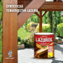 LAZUROL TOPDECOR Tenkovrstvá syntetická lazúra zo zmesou voskov a olejov na drevo S1035 je určený k ochranným lazúrovacím náterom mäkkého a tvrdého dreva (drevo, drevotrieska, korok), vystaveného poveternostným vplyvom i k náterom v interiéroch. Používa sa v interiéroch aj v exteriéroch (s vynimkou prírodného bezfarebného odtieňa) na záhradný nábytok, drevené štíty, podhľady, obloženie stien a stropov, ploty, chaty a drevené domčeky, okná, dvere, korok, penetrácia drevených podláh. Hlboko preniká do štruktúry dreva a zvýrazňuje kresbu dreva.