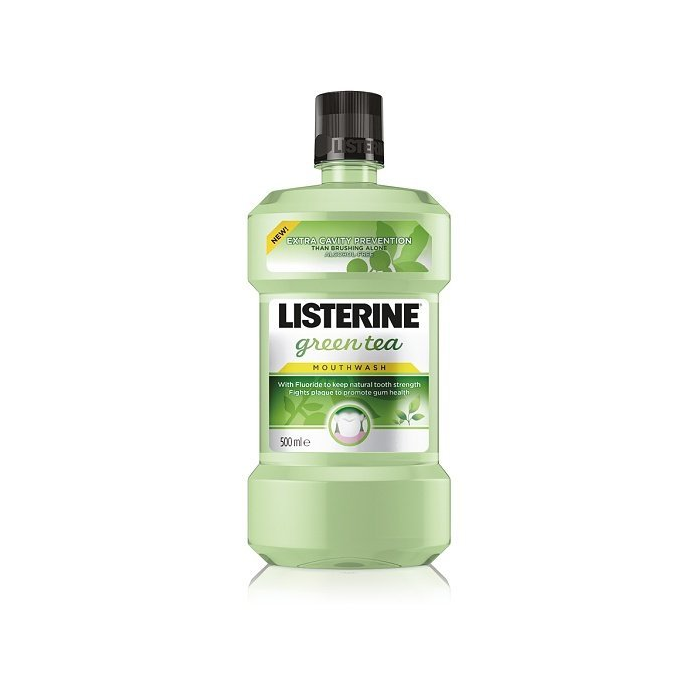 Je dokázané, že používanie ústnej vody LISTERINE® GREEN TEA s obsahom fluoridu, esenciálnych olejov a výťažku zo zeleného čaju dvakrát denne: