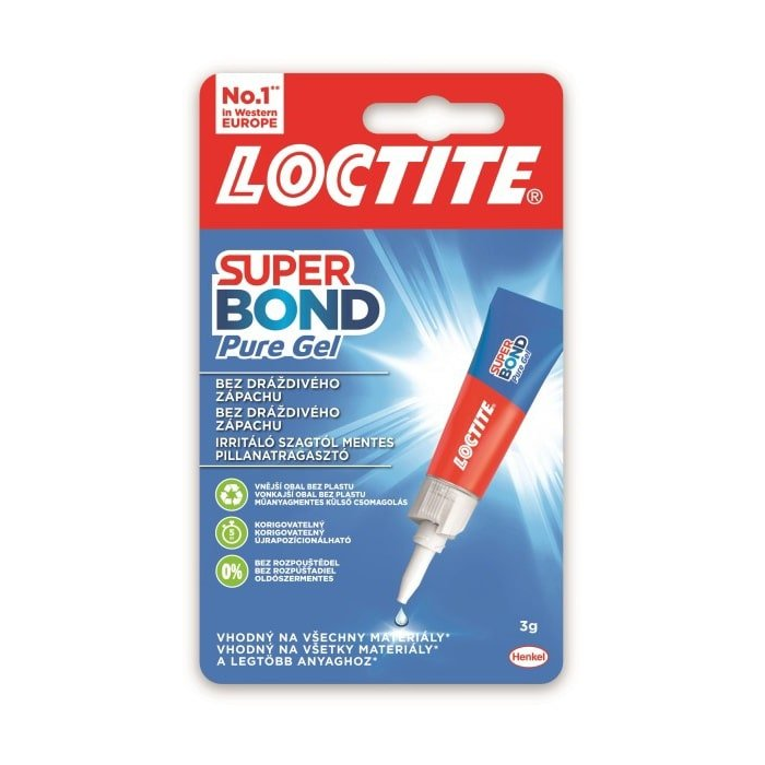 Sekundové lepidlo Loctite Super Bond Pure Gel - bez rizika okamžitého zlepenia prstov. Vhodné na lepenie porcelánu, plastov, gumy, kože, dreva, kovov a papiera.