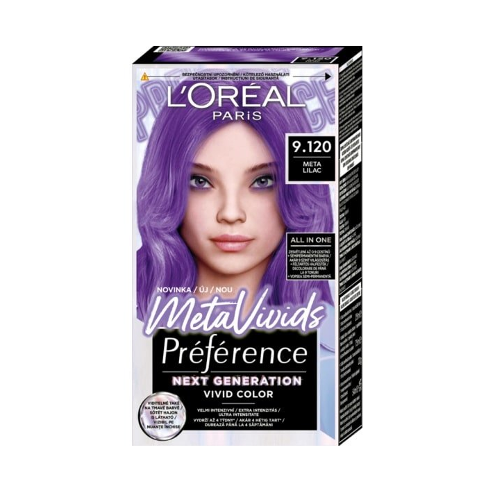 Nechcete chodiť ku kaderníčke, radšej si odfarbíte vlasy doma a poteší vás fialová farba? Potom by sa mohla stať vašou obľúbenou farbou na vlasy L'Oréal Paris. Hovoríme o semipermanentnej farbe L'ORÉAL PARIS Preférence Meta Vivids Meta Lilac, ktorú z vlasov ľahko vymyjete. Postará sa o komplexné farbenie celej hlavy.