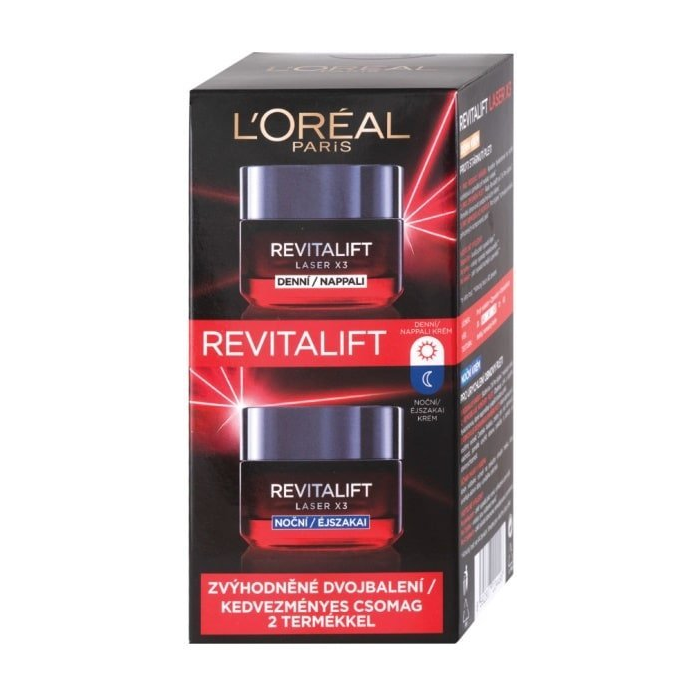 L'Oréal Paris Revitalift Laser X3 denný a nočný krém predstavujú dokonalú starostlivosť o pleť v boji proti vráskam. Obsahujú účinné zloženie pre redukciu vrások - kyselina hyalurónová sa rýchlo vstrebáva a pomáha pri redukcii vrások, pre spevnenie pleti - rad Revitalift s 3% Pro-Xylanu™ pomáha obnovovať podporné vlákna pokožky a pre remodeláciu pleti - Pro-Xylane™ stimuluje produkciu prirodzených komponentov pleti. L'Oréal Paris Revitalift Laser X3 denný a nočný krém je v boji proti starnutiu pleti jasným víťazom!