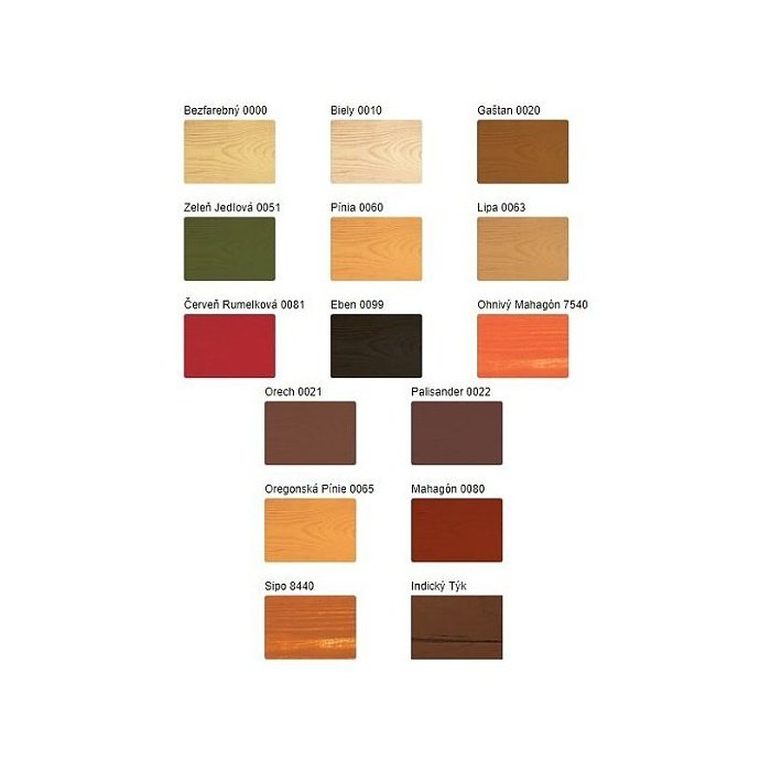 Upozornenie: Reklamáciu farebných odtieňov uznávame len vtedy, ak bol pred realizáciou na objekte vykonaný skúšobný náter, a ten bol u nás reklamovaný. Pri použití rovnakej výrobnej šarže je zaručený ten istý farebný odtieň. Farebné odtiene rôznych šarží doporučujeme pred aplikáciou zmiešať vo väčšej nádobe. Bezfarebný odtieň nie je vhodný do exteriéru. Typ, povrch a predchádzajúci náter dreva ovplyvňujú výsledný odtieň náteru, preto odporúčame previesť skúšobný náter pred finálnou aplikáciou.
