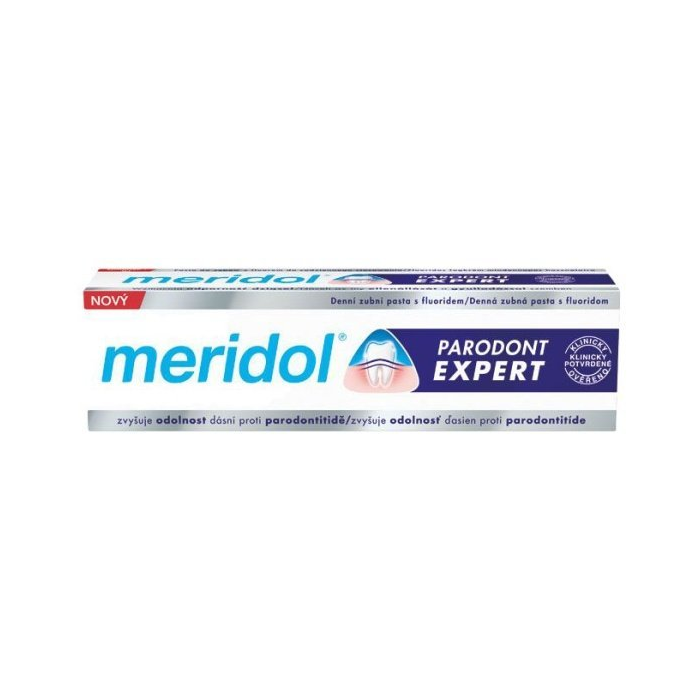 Meridol PARODONT EXPERT je vyvinutá špeciálne pre pacientov so sklonom k parodontitíde. Poskytnete im podporu, ktorú potrebujú. Zubná pasta Meridol® parodontu EXPERT výrazne znižuje výskyt zubného povlaku, zápalu ďasien a krvácania ďasien.