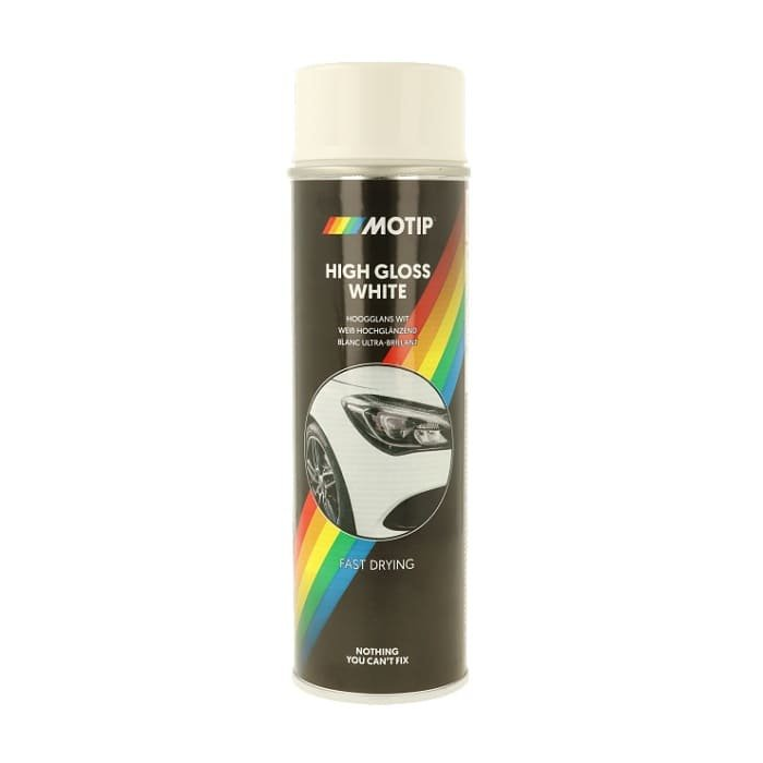 Biela farba v spreji MOTIP s matnou a vysoko lesklou povrchovou úpravou na lakovanie častí vášho vozidla. MOTIP White Paint je rýchloschnúca akrylová farba ponúkajúca vynikajúce krytie a priľnavosť pre ošetrené a neošetrené povrchy vrátane dreva, kovu, skla a plastu. Tento lak je dlhotrvajúci a má dobrú tvrdosť povrchu. Je odolný voči benzínu, chemikáliám a poveternostným vplyvom, nebledne a je odolný voči UV žiareniu.