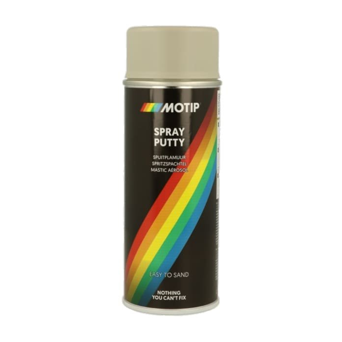 Vyplňte nerovnosti na ošetrených a neošetrených povrchoch z dreva, kovu a hliníka prípravkom MOTIP Spray Putty. Prípravok Spray Putty rýchlo schne a má vynikajúce vlastnosti plnenia a krytia. Sprej má vynikajúcu priľnavosť a zabraňuje hrdzaveniu. Prípravok MOTIP Spray Putty sa ľahko brúsi, za mokra aj za sucha (od zrnitosti 400).