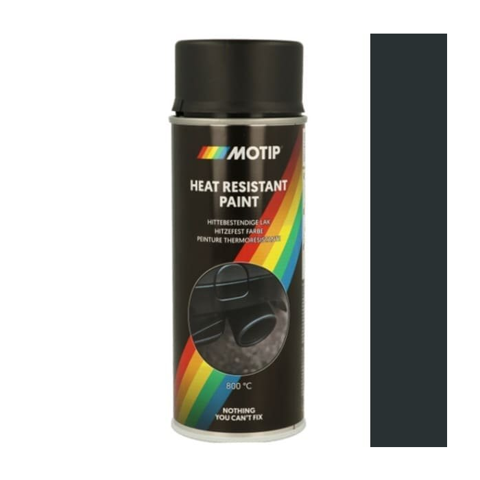 Žiaruvzdorný sprej pre opravy tepelne namáhaných podkladov na výfukových systémoch, sporákov, griloch a pod. Stačí nastriekať bez základného náteru priamo na surové/neupravené kovové povrchy. Má dobrú kryciu schopnosť, vynikajúcu priľnavosť, je odolný voči vode, rýchloschnúci a vytvára odolný, hladký matný povrch.