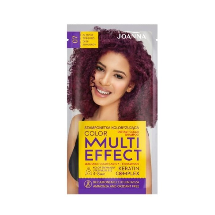 Farbiaci šampón neobsahuje amoniak. Oxidanty a keratínový komplex obsiahnutý vo vzorci má zvlhčujúci a vyživujúci účinok. Po ošetrení vaše vlasy získajú žiarivú, oslnivú farbu, ktorá vydrží od 4 do 8 umytí. Multi Effect Color farbiace šampóny sú tiež skvelý spôsob, ako rýchlo a pohodlne zmeniť farbu vlasov.
