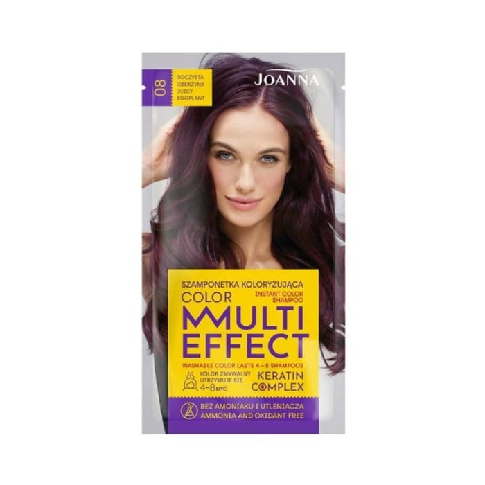 Farbiaci šampón neobsahuje amoniak. Oxidanty a keratínový komplex obsiahnutý vo vzorci má zvlhčujúci a vyživujúci účinok. Po ošetrení vaše vlasy získajú žiarivú, oslnivú farbu, ktorá vydrží od 4 do 8 umytí. Multi Effect Color farbiace šampóny sú tiež skvelý spôsob, ako rýchlo a pohodlne zmeniť farbu vlasov.