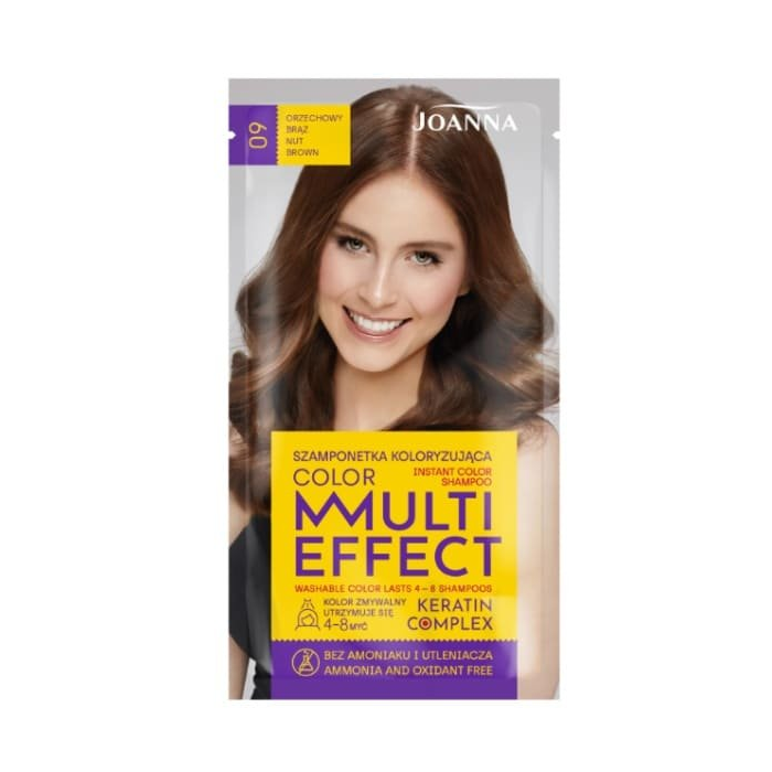 Farbiaci šampón neobsahuje amoniak. Oxidanty a keratínový komplex obsiahnutý vo vzorci má zvlhčujúci a vyživujúci účinok. Po ošetrení vaše vlasy získajú žiarivú, oslnivú farbu, ktorá vydrží od 4 do 8 umytí. Multi Effect Color farbiace šampóny sú tiež skvelý spôsob, ako rýchlo a pohodlne zmeniť farbu vlasov.