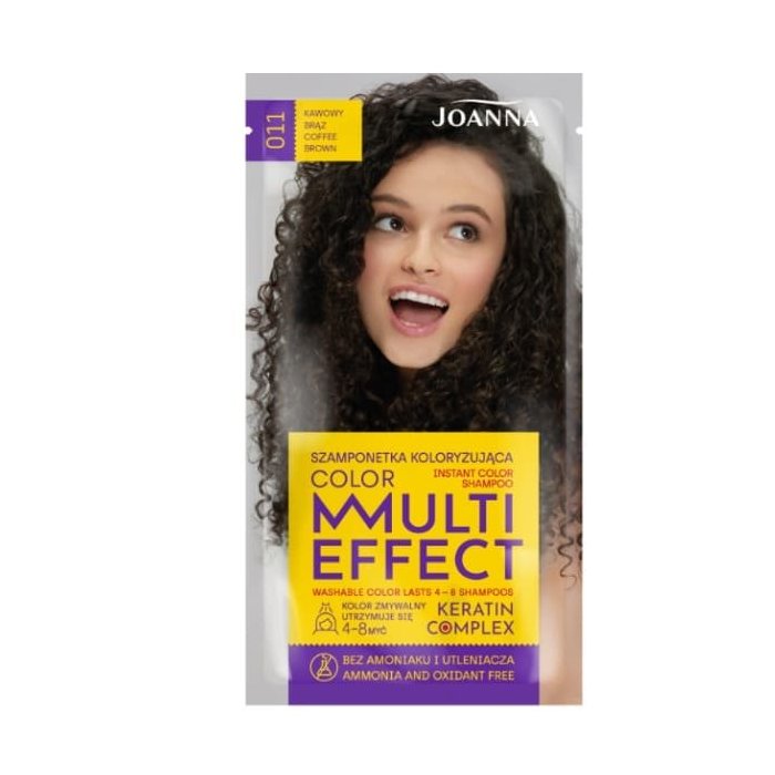 Farbiaci šampón neobsahuje amoniak. Oxidanty a keratínový komplex obsiahnutý vo vzorci má zvlhčujúci a vyživujúci účinok. Po ošetrení vaše vlasy získajú žiarivú, oslnivú farbu, ktorá vydrží od 4 do 8 umytí. Multi Effect Color farbiace šampóny sú tiež skvelý spôsob, ako rýchlo a pohodlne zmeniť farbu vlasov.