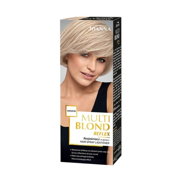 Rozjasňujúci sprej multi blond reflex umožňuje dosiahnuť slnečné odlesky blond vlasov počas celého roka, nie len počas slnečných letných dní. Veľmi rýchlo rozjasňuje a zosvetľuje pramienky vlasov a dodá im efekt prirodzeného letného melíru.