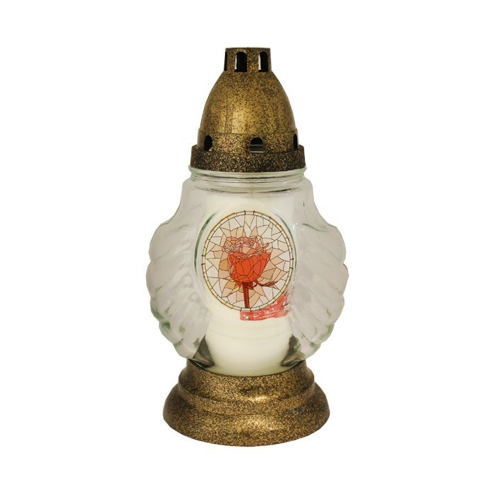 Náhrobný kahanec sklo 3016 biely 200g Náhradná náplň parafínová by mala vydržať horieť +-72h. Čas horenia závisí od atmosferických vplyvov.