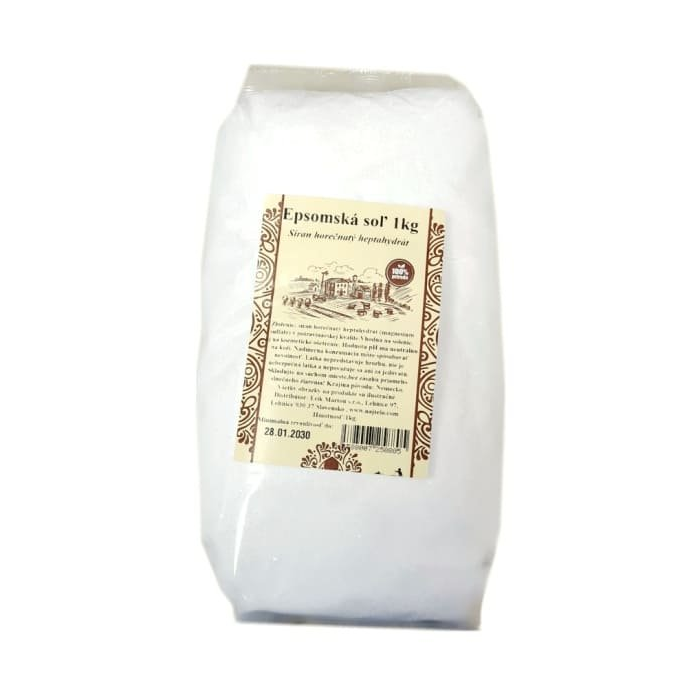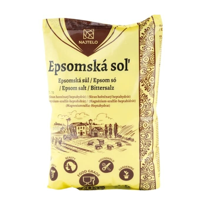 Epsomská soľ – síran horečnatý pomôže pri rozličných nedostatkoch a problémoch organizmu. Navodzuje telo na pokojnejší spánok, dokáže upraviť srdcový rytmus či znížiť krvný tlak. Pomáha rovnako zmenšiť opuchy brucha. Epsomská soľ je vhodná na kozmetické ošetrenie ale aj bežné kuchynské použitie.