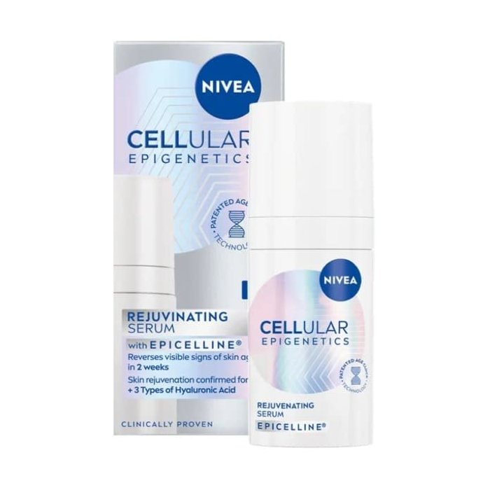 Objavte novú generáciu starostlivosti o pleť s NIVEA Cellular Epigenetics omladzujúcim sérom. Toto epigenetické pleťové sérum s patentovanou látkou Epicelline® cielene reaktivuje „mladé“ funkcie pleťových buniek a zvracia biologický vek pleti už za 2 týždne. Výsledkom je viditeľne pevnejšia, hladšia a mladšie vyzerajúca pokožka.