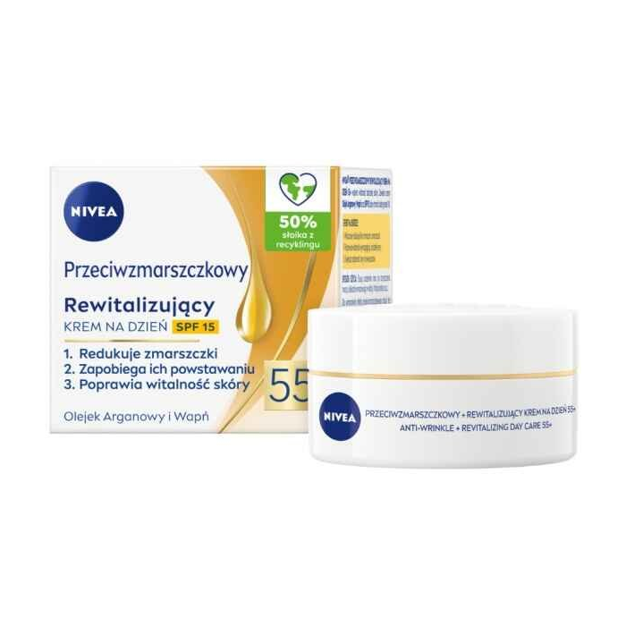 Účinné ingrediencie znamenajú viditeľné výsledky. Spoľahnite sa na kombináciu arganového oleja a kalcia, ktorá bojuje proti vráskam zvnútra. UV filtre v zložení krému navyše pôsobia proti UV žiareniu, ktoré je jednou z hlavných príčin vzniku nových vrások a liniek. Zabudnite na unavenú pleť, ktorej chýba vitalita. Zvoľte: NIVEA Obnovujúci denný krém proti vráskam 55+.