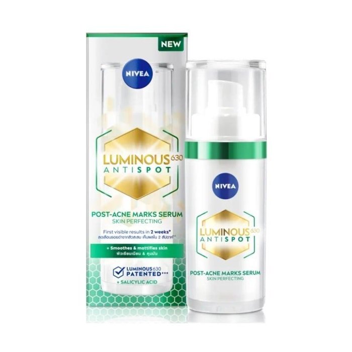 Ľahké gélové sérum je pripravené zatočiť s následkami akné! Je na ne vybavené hneď trojitým účinkom, ktorý vašu tvár opäť rozjasní. Vysoko účinná patentovaná zložka LUMINOUS630 ® viditeľne redukuje a zosvetľuje tmavé škvrny po akné už za 2 týždne. Zloženie je navrhnuté špeciálne pre potreby mastnej a zmiešanej pleti so sklonom k akné. Kyselina salicylová jemne vyrovnáva nedokonalosti pleti, kyselina hyalurónová jej zas dodá potrebnú hydratáciu. A výťažok zo zeleného čaju pomáha vyrovnávať prirodzenú mastnotu pleti.