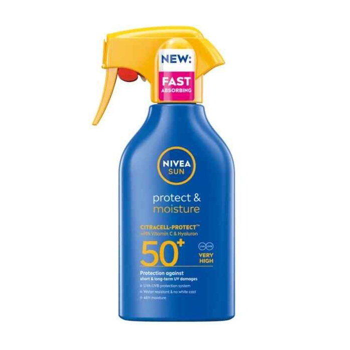 Vyhnite sa spáleniu a predčasnému starnutiu pokožky, a to používaním opaľovacieho spreja s vysokým SPF 50+. Vysoko účinný sprej na opaľovanie sa vďaka rozprašovaču rovnomerne nanáša a veľmi rýchlo vstrebáva. Pokožku nevysušuje a zachováva mikrobiálnu vrstvu, jej obranný štít. Vodoodolné zloženie obsahuje vitamín C a kyselinu hyalurónovú, ktorá pokožku hydratuje až na 48 hodín. Inovatívna technológia Citracell Protect zaisťuje spoľahlivú ochranu pred krátkodobým aj dlhodobým poškodením pokožky spôsobenej UV žiarením. Zloženie navyše neobsahuje UV filtre octinoxate, oxybenzone, octocrylene a je bez mikroplastov. Fľaša je z 96 % vyrobená z recyklovaného plastu (okrem viečka a etikiet). Pre zdravo vyzerajúcu a hebkú pokožku: NIVEA Sprej na opaľovanie Protect & Moisture SPF 50+.